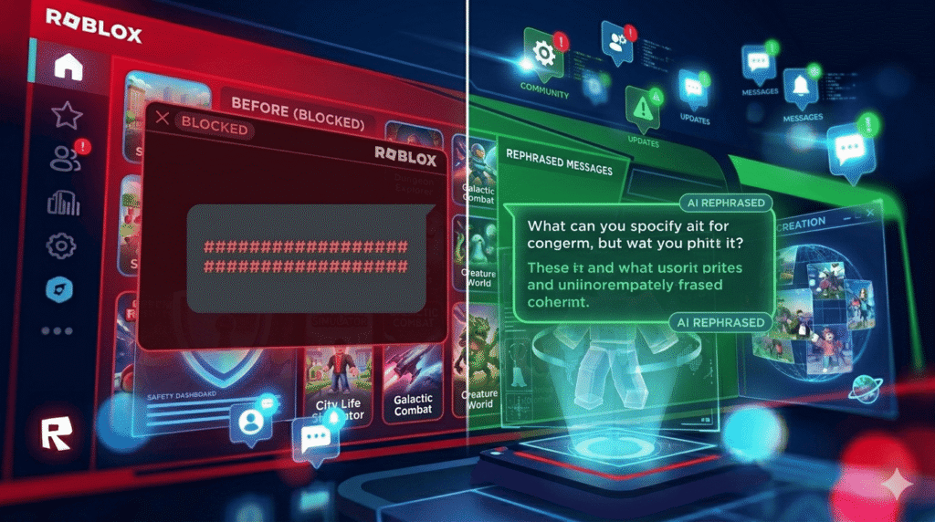 This is the one everyone’s talking about. On March 5, 2026, Roblox officially launched its real-time AI chat rephrasing system โ and it’s a bigger deal than most people realize.